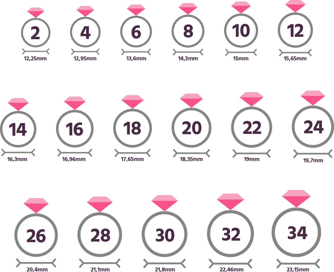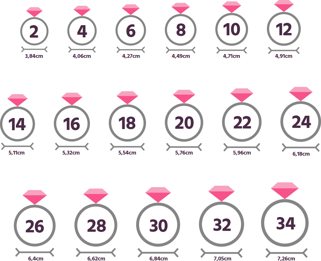 Se você já possui um anel da Rommanel, alguns modelos possuem a marcação interna da numeração e você pode se basear nisso! Na Rommanel, a numeração é igual para todos os modelos de anéis.