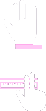 Caso não tenha uma fita métrica, utilize um barbante, marque o início e fim da circunferência e estique ao lado de uma régua para comparar a medida. Agora é só comparar com a nossa tabela e saber qual tamanho de bracelete ou pulseira corresponde à sua medida.